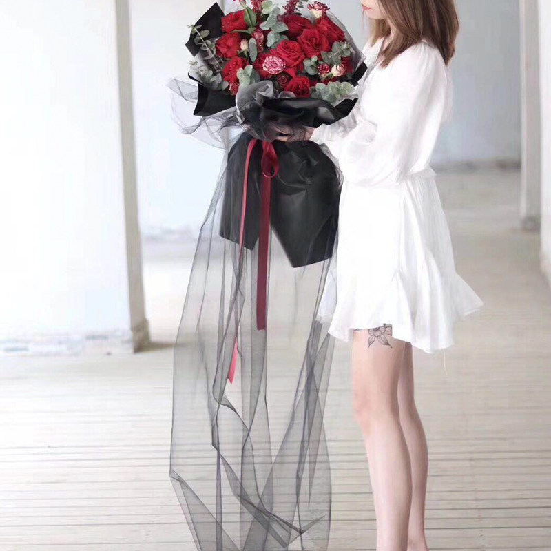 Fairy veil white wrapper veil black flower bouquet wedding veil veil flower veil flower packaging mesh