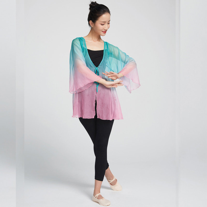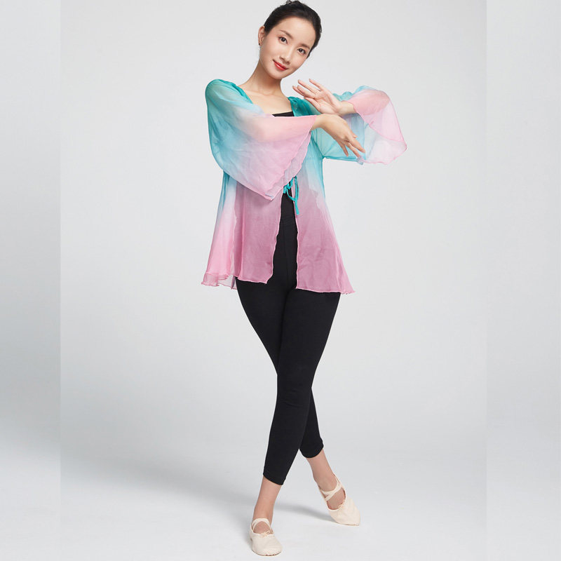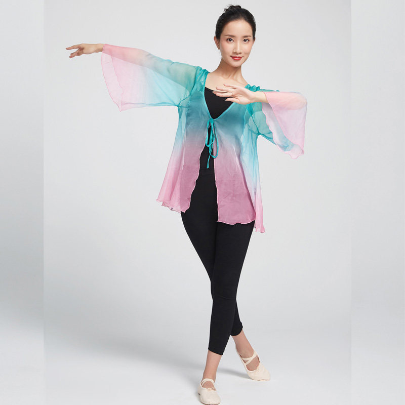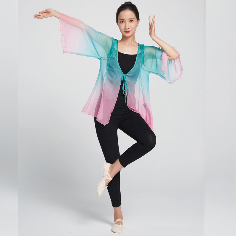 Chinese Ethnic Teacher Classical Dance Costume Performance Uniform with Gradual Lacing Garment for the Fairy Body Rhyme and Rhythmic Training
