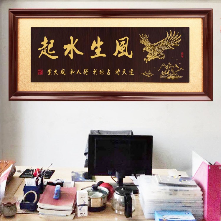 Office plaque Wind with water to hang up a plaque Corporate sign Opening a congratulatory plaque for a solid wood plaque Integrity and win-win