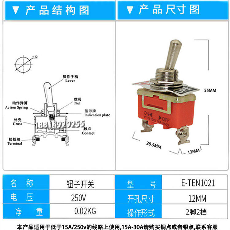 Button Switch Rocker Toggle Switch 3 Gears Car Switch Retrofit Switch 2 Gear 6 Foot 3 Gear Twist Switch Two Stalls
