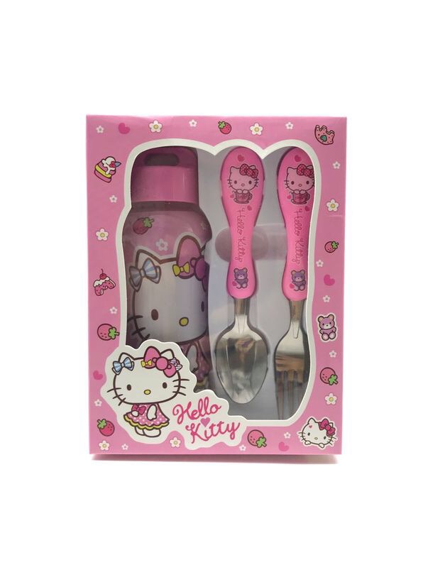 Cartoon Kettle Set Cute Children Spoon Fork Water Bottle Portable Tableware Three-piece Set Student Picnic Portable
