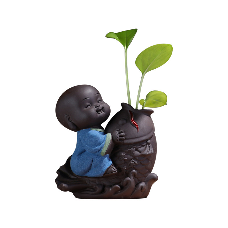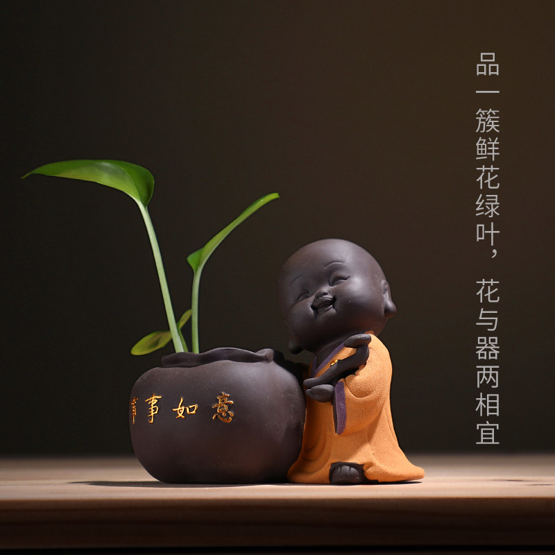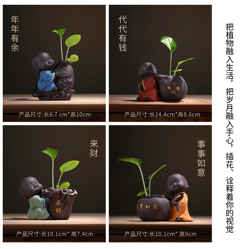 Zen Chinese Style Small Monk Family Residence Decoration Pint Flower Ware Small Hydroppeter Mini Flower Pot Book House Desk Furnishing