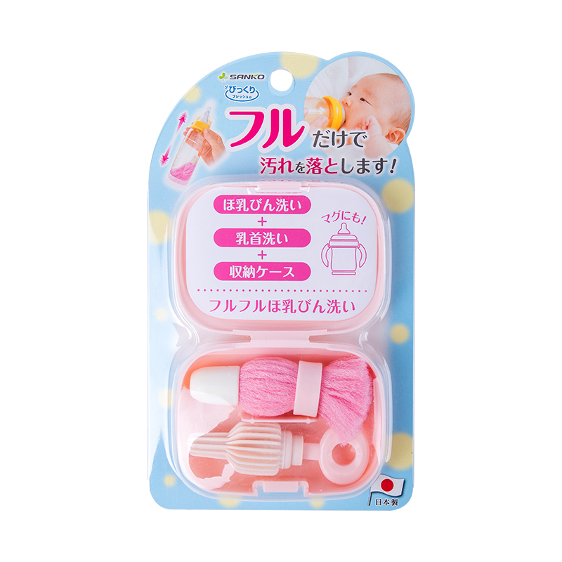 Japan sanko baby bottle brush set baby pacifier brush portable cleaning brush travel outdoor brush belt box