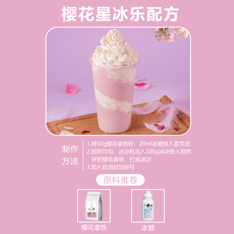 Frappuccino 1kg net red cherry blossom latte powder Frappuccino spring and summer new flower and fruit natural color dessert milk tea shop special
