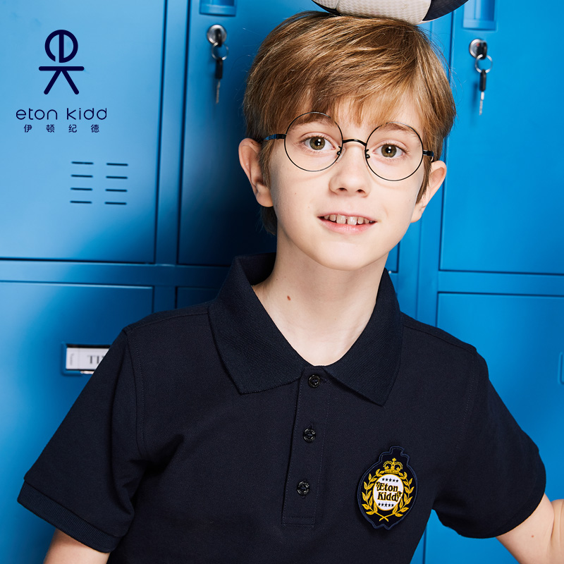Eaton Gide school uniform boys and girls navy blue short-sleeved POLO shirt cotton T-shirt summer 10T013