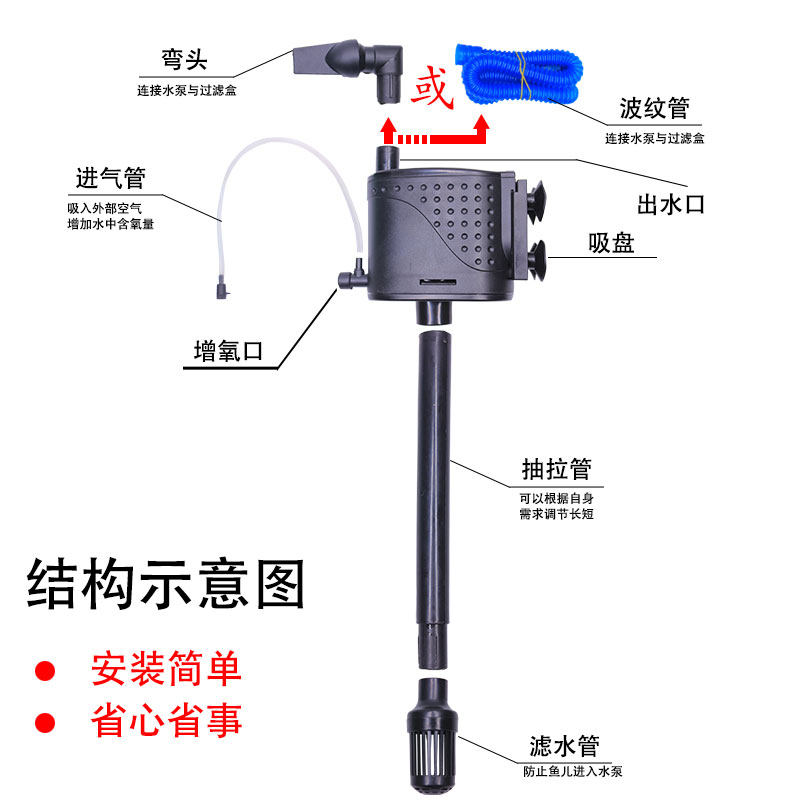 Fish tank submersible pump ultra-quiet household energy-saving high-lift filter oxygenation pump three-in-one oxygenation pump