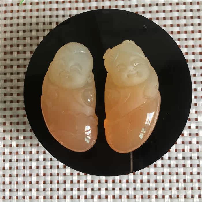 Natural jade Huanglong Jade A pair of pendants for golden children and jade girls
