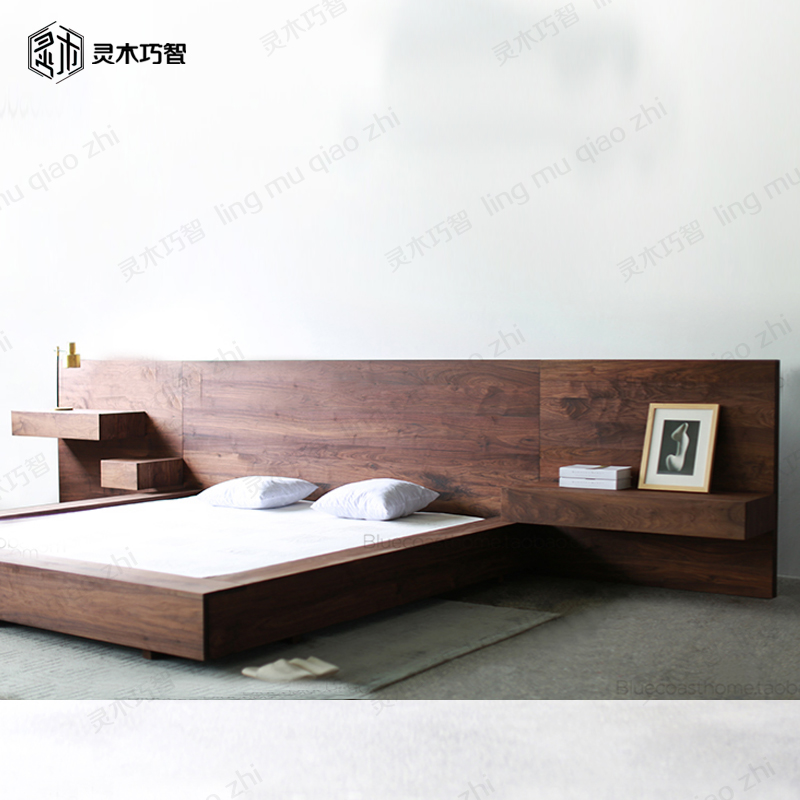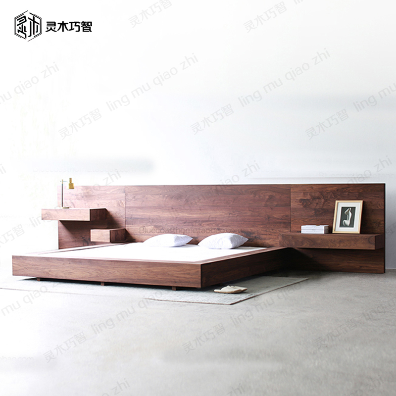 Black walnut Nordic high-end solid wood furniture tatami one-piece big bed presidential suite large double bed
