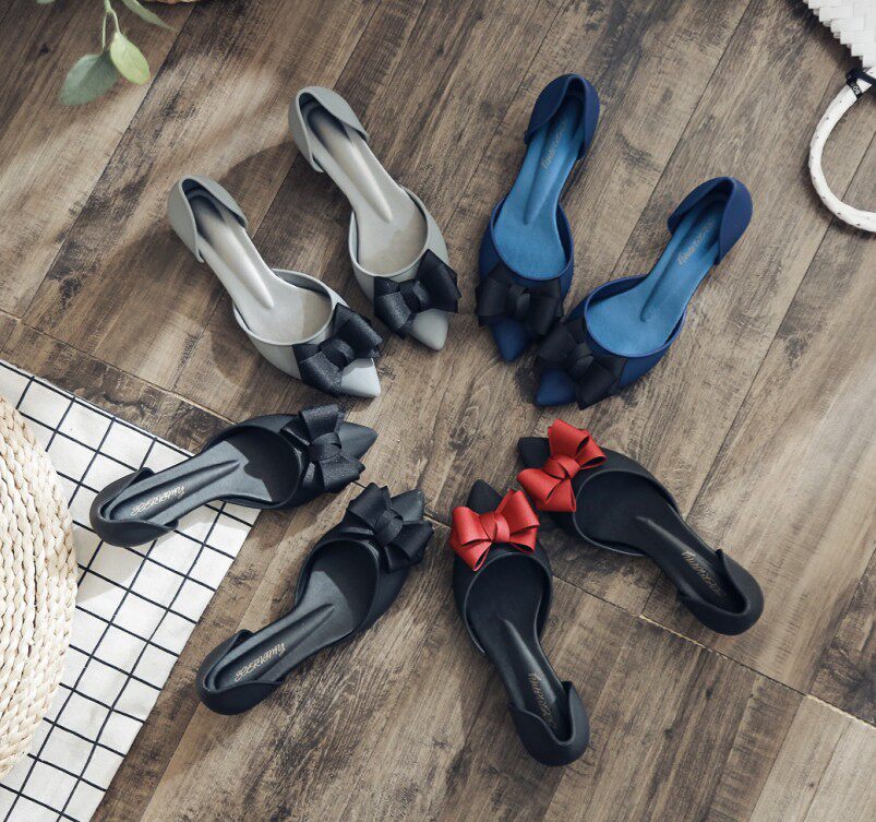 2022 Summer Korea lovely rain shoes women in luxury butterfly frozen shoes pointed head of simple slope heel shoes woman