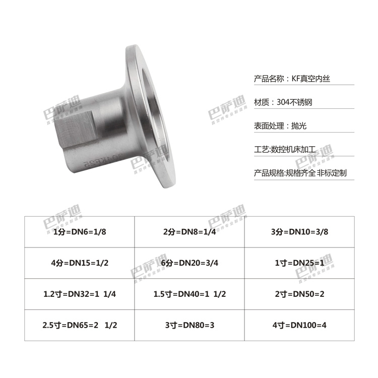 304 stainless steel vacuum KF chuck inner wire quick-fit inner wire KF16 KF25 KF40 kf50 milling inner wire