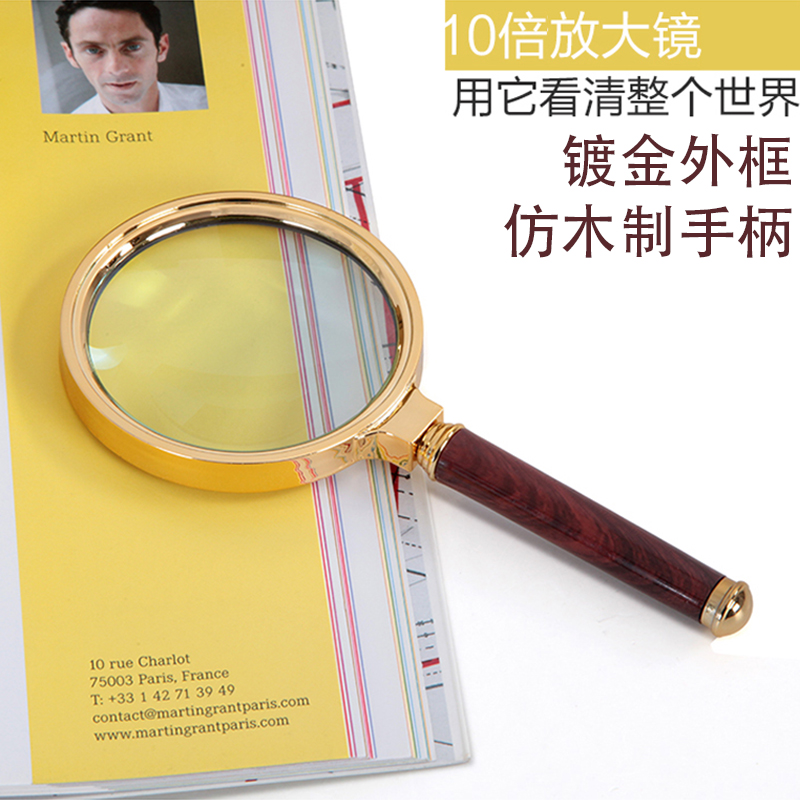 High power HD handheld magnifying glass optical 10 times students 20 times Children 100 old people reading old age enlarging mirror