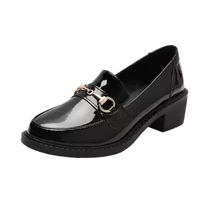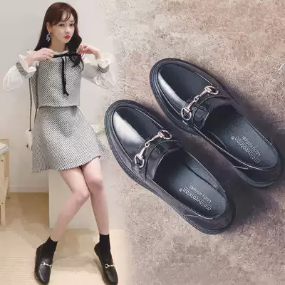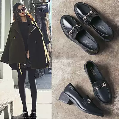 Small leather shoes female British style rough heel loafers shoes thick bottom with skirt black 2021 new summer jk professional thin model