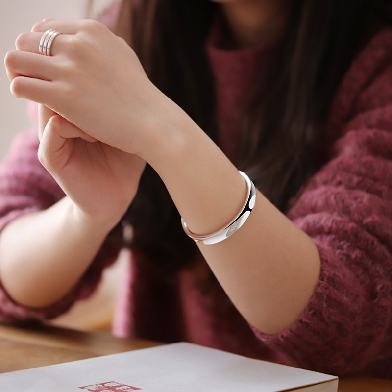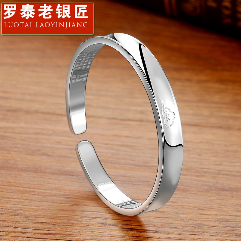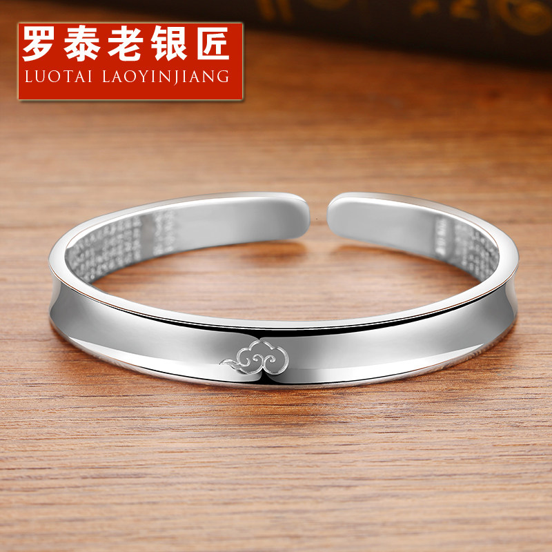 LuoTai old silversmith 999 sterling silver Xiangyun Xinjing bracelet men's and women's vintage foot silver bracelet can be engraved as a gift