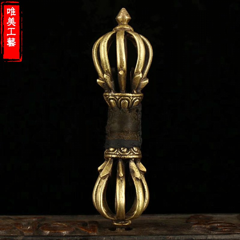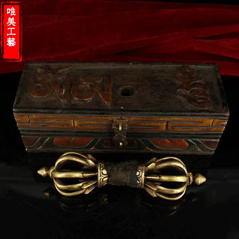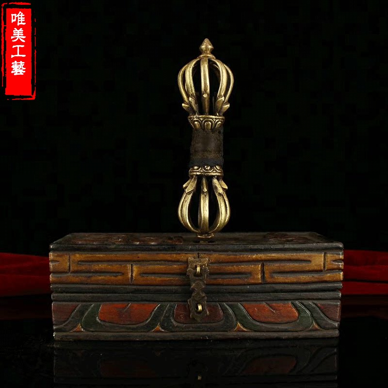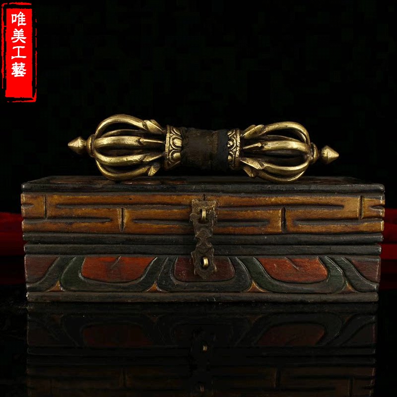 Beautiful pure copper instrument Tibetan Dharma instrument nine-shared vajra pestle Tantric Tibetan Buddha supplies nine-shared pestle with wooden box