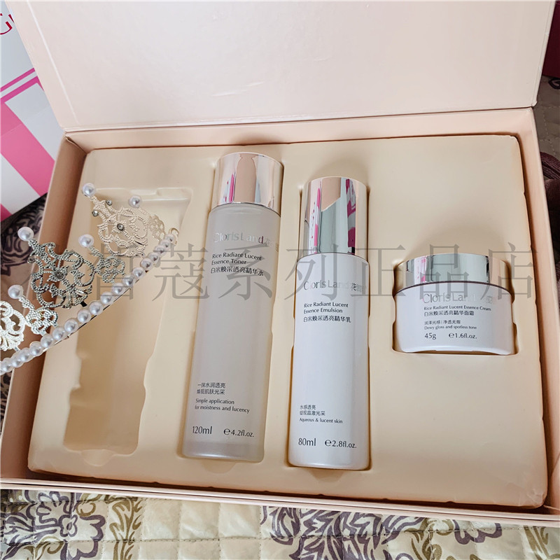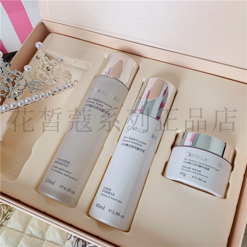 Flower Fair official white rice set case skin-care products cover set high moisturizing essence water milky face cream Tibright and clear and smooth
