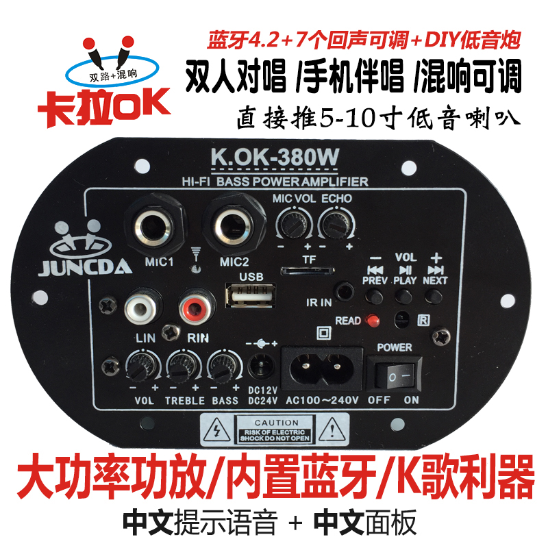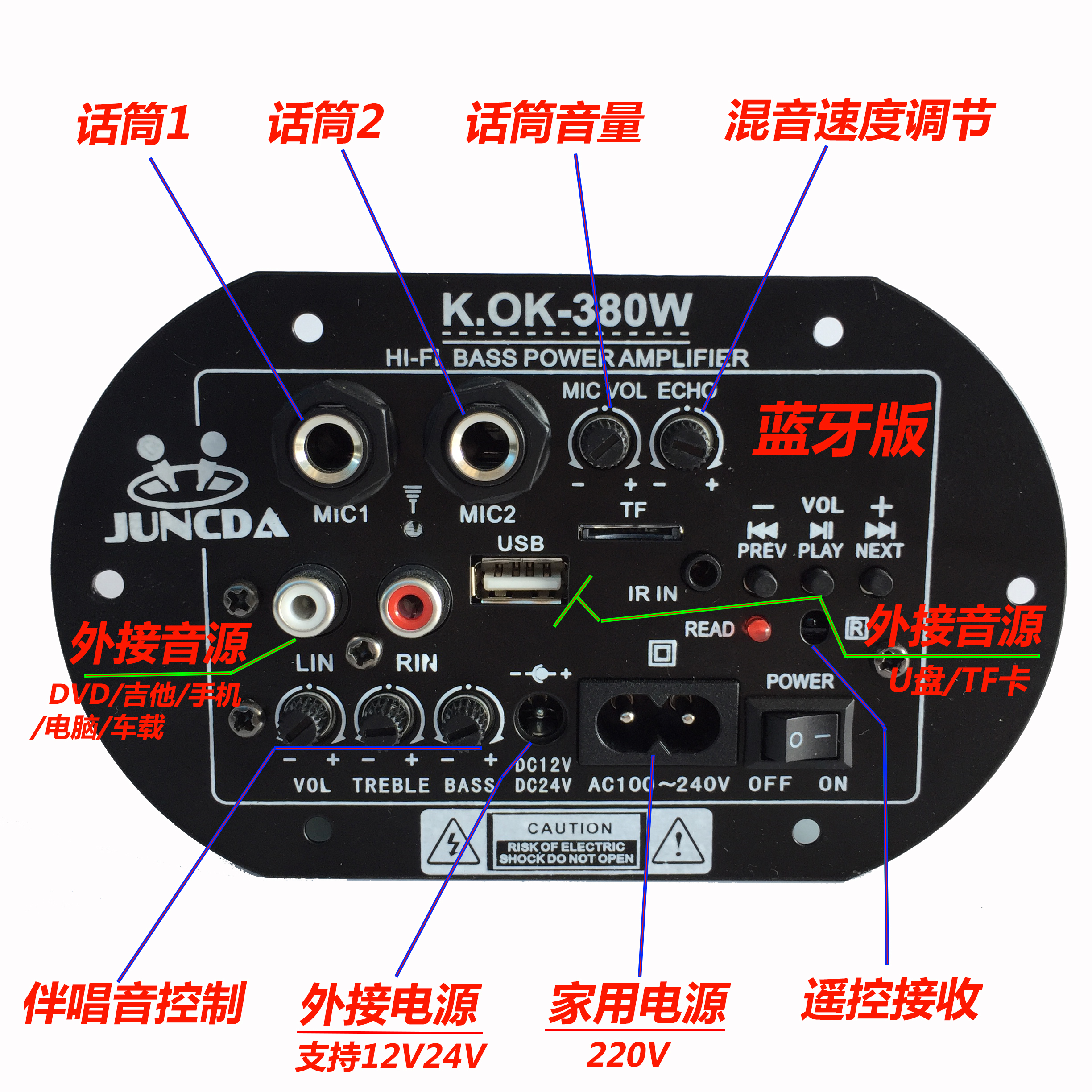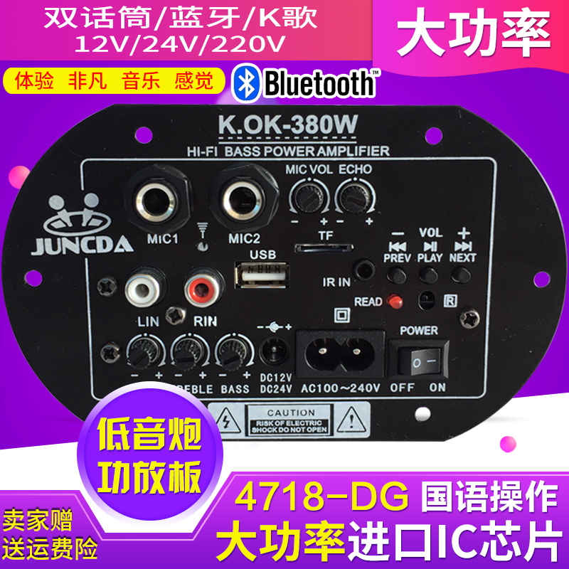 Dual microphone high-power Bluetooth amplifier board 12V24V220V subwoofer amplifier board speaker motherboard car universal