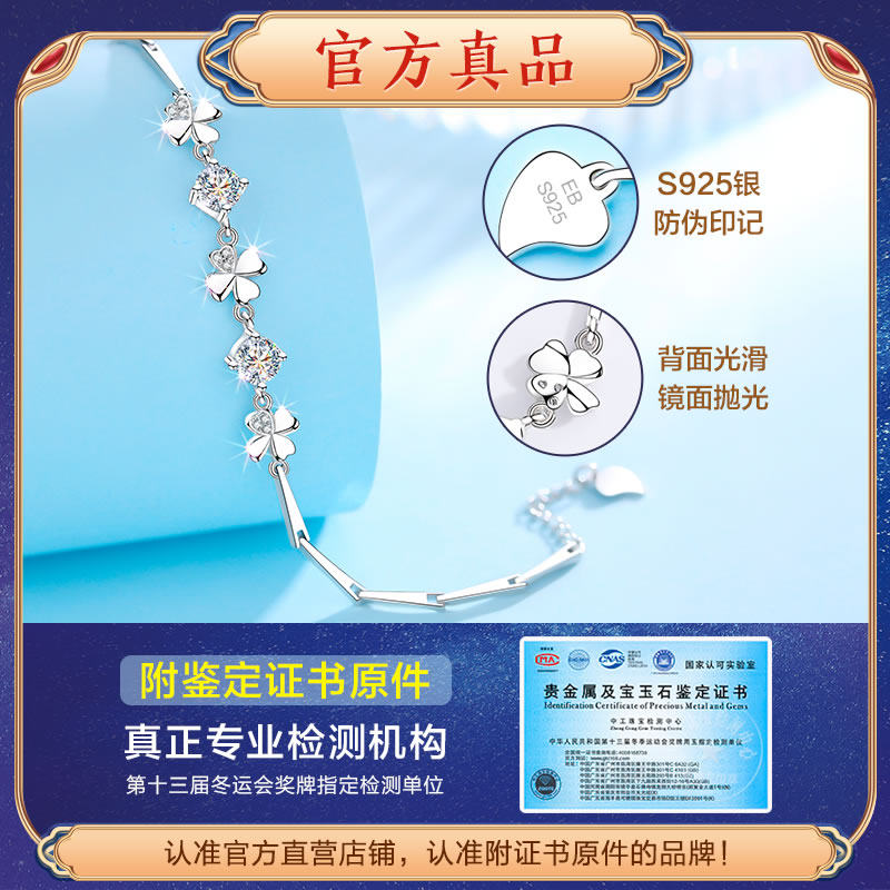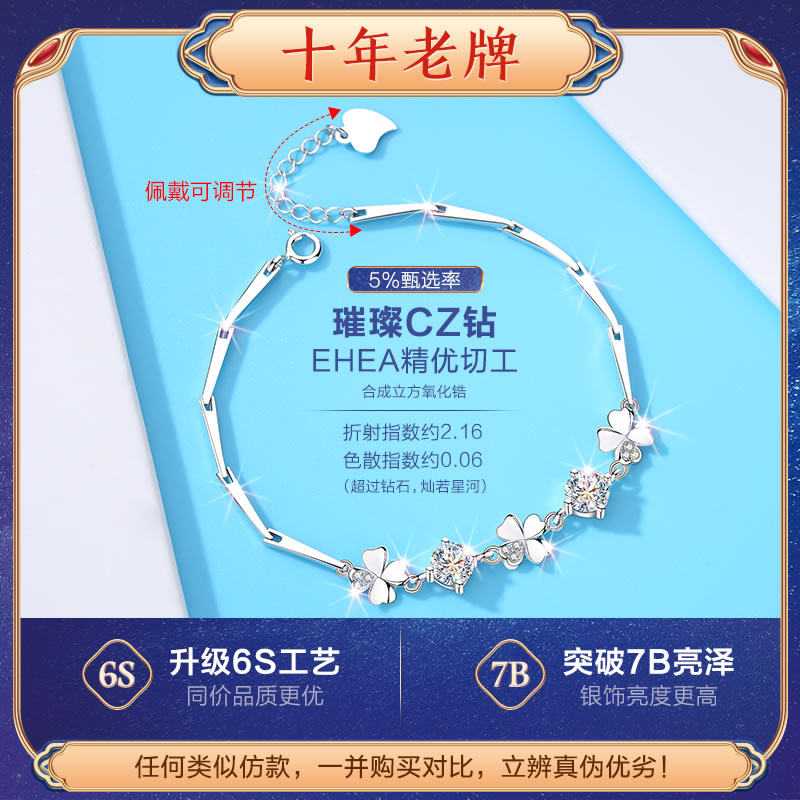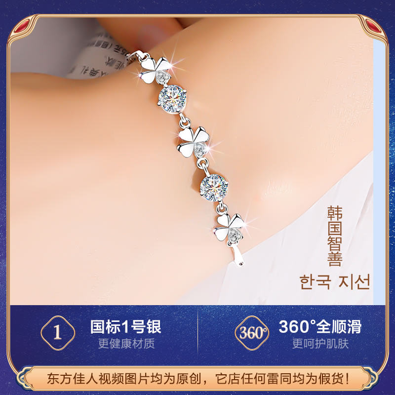 Silver four-leaf straw bracelet woman with female pure silver handmade lady's birthday present girl 2023 new bestie silver jewelry-Taobao