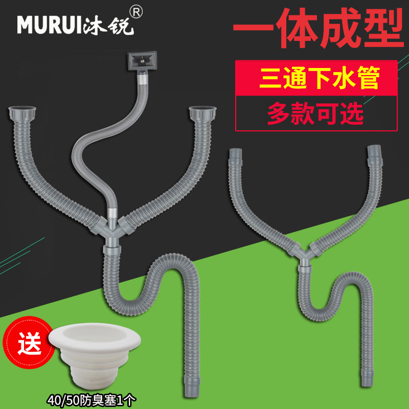 Kitchen sink drain pipe Double sink sink sink drain pipe Mop pool Washing machine drain pipe Extended Y-shaped hose