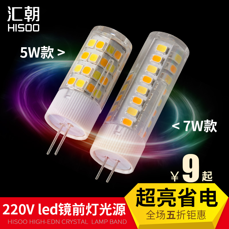 g4 lamp pearl led220v volt mirror front light water crystal lamp special two-pin fine pin small bulb 5w7w tricolour light source