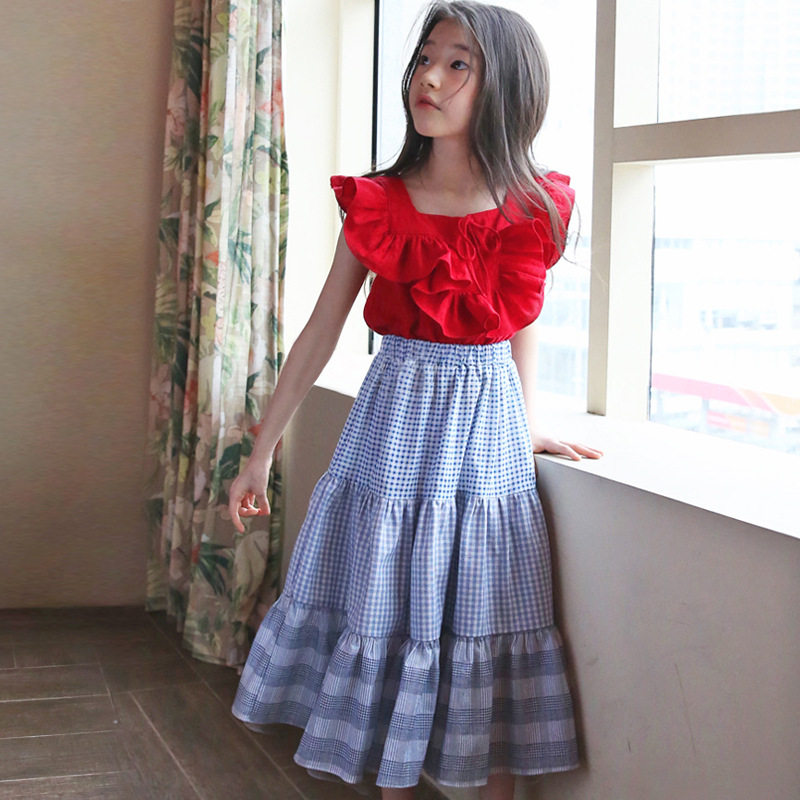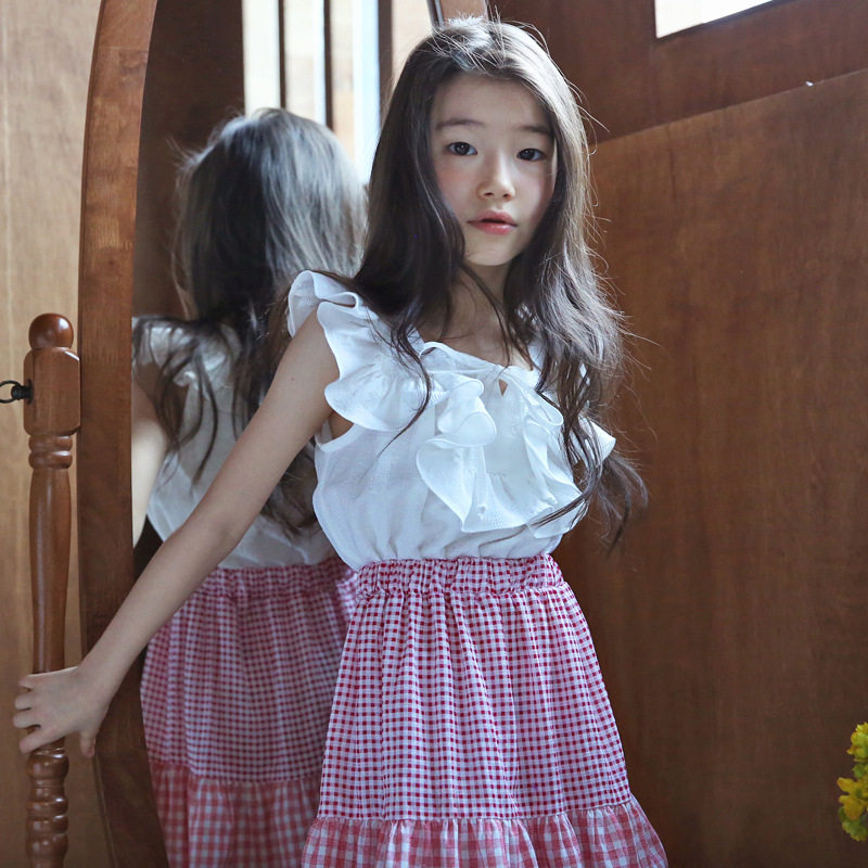 Girl Han Version 2022 Summer Loaded Pure Cotton Splicing Princess Wind Lotus Leaf Lace Princess Dresses Big Boy Vest Long Skirt
