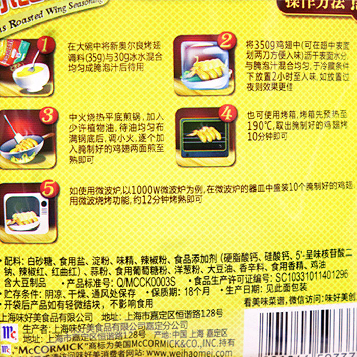 McCormick New Orleans Grilled Wings Seasoning 35g*24 Bags Outdoor BBQ Beef and Lamb Chop Grilled Meat Grilled Chicken Wings Marinade