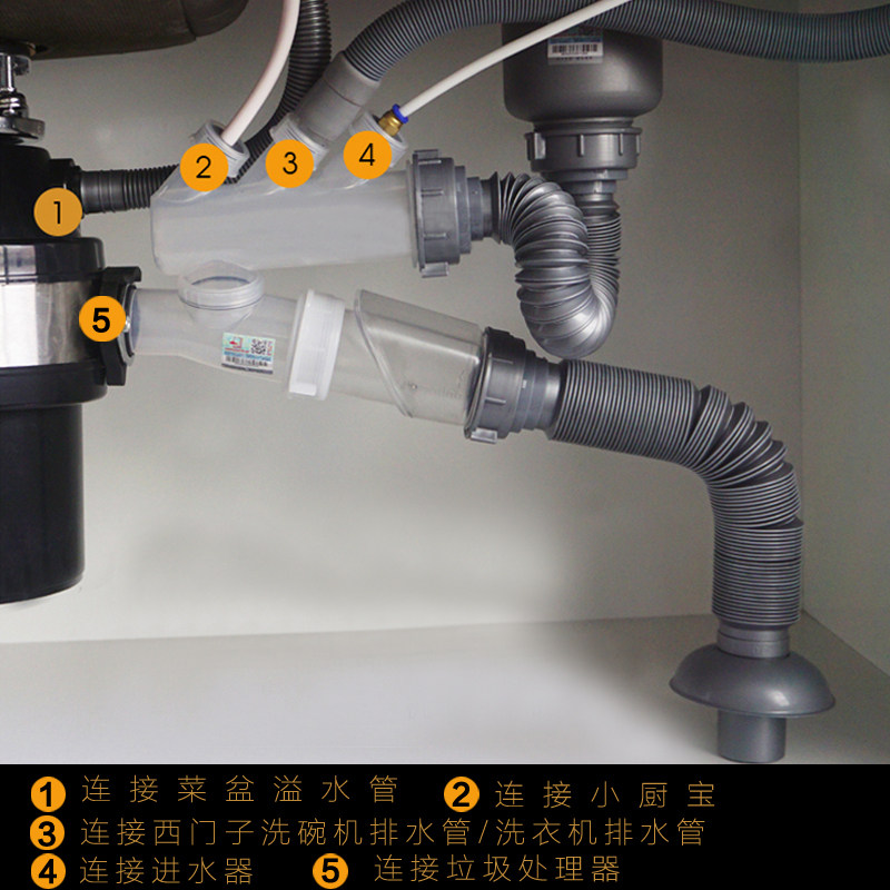 Single sink trash processor Lower water pipe double sink trash processor Lower water pipe