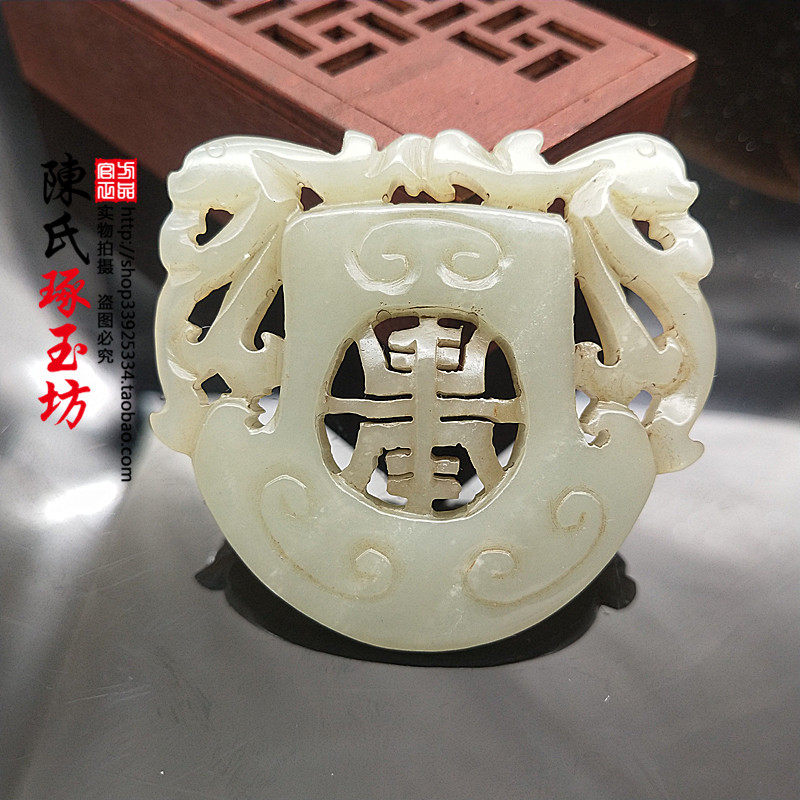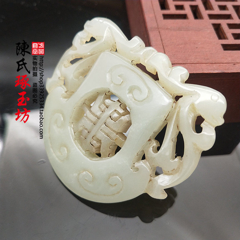 Hetian jade green white jade palace dragon jade pendant neck ornaments pendant antique jade double-sided hollow pendant jade