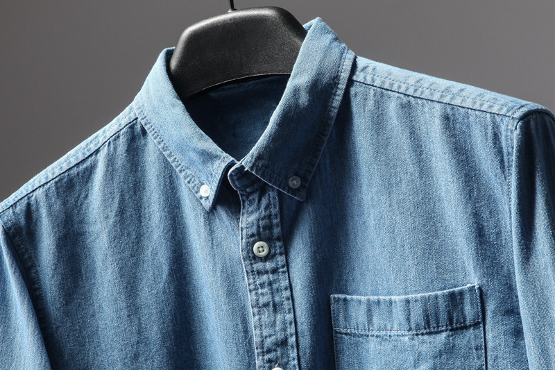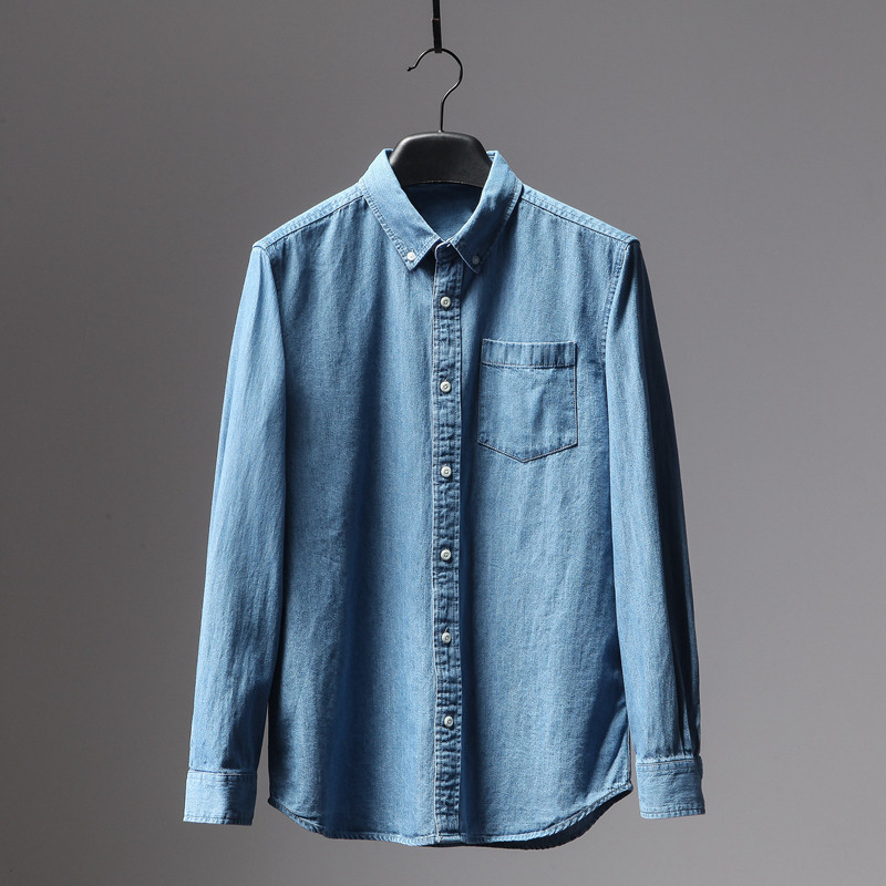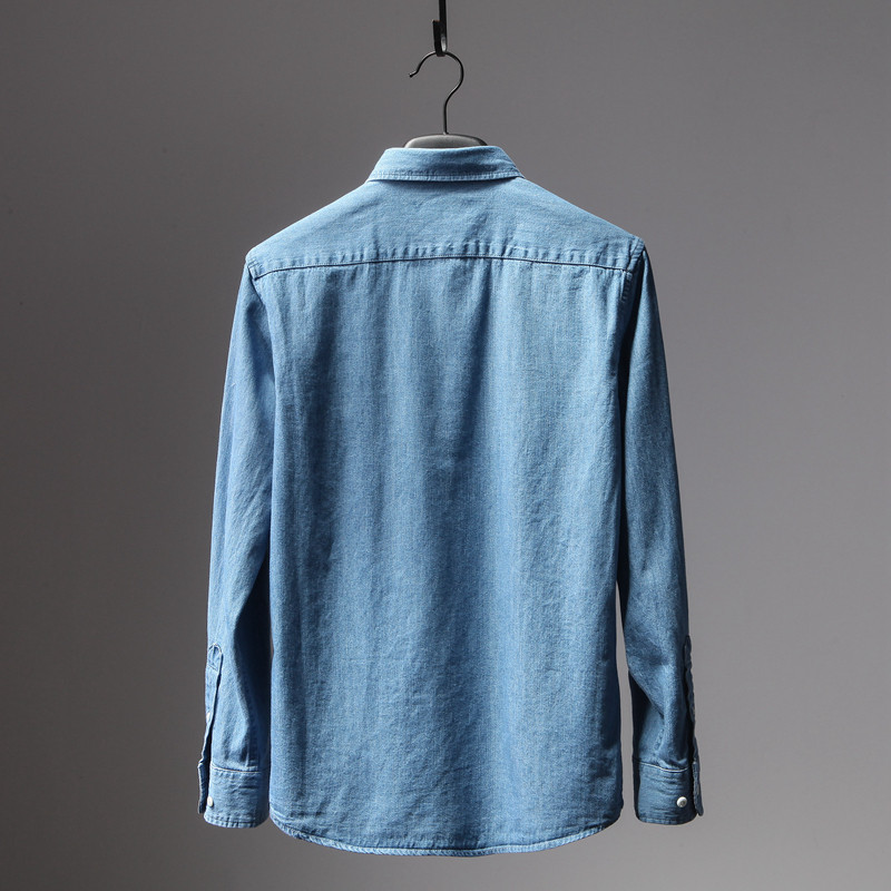 Foreign Trade Original Single Cut for men's Classic Denim Blue Tannin Casual Long Sleeve Shirt Men's Denim