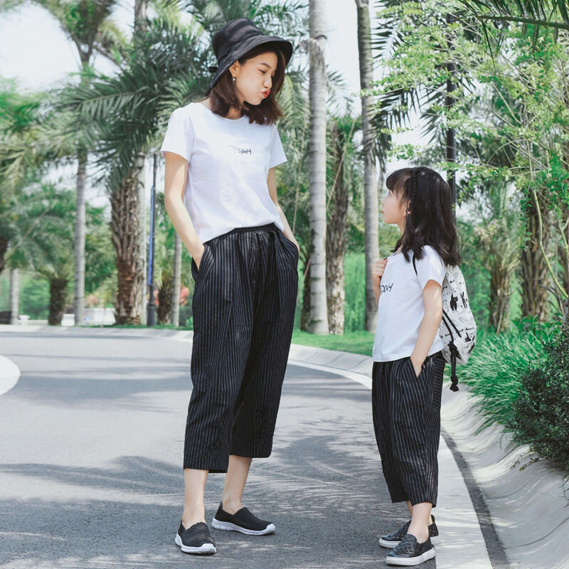 2023 Summer Dress New Fashion Loose Foreign Pistachio Clothing Pure Cotton White T-Shirt Seven-minute Pants Mother Women Dress Suit Tide-Taobao