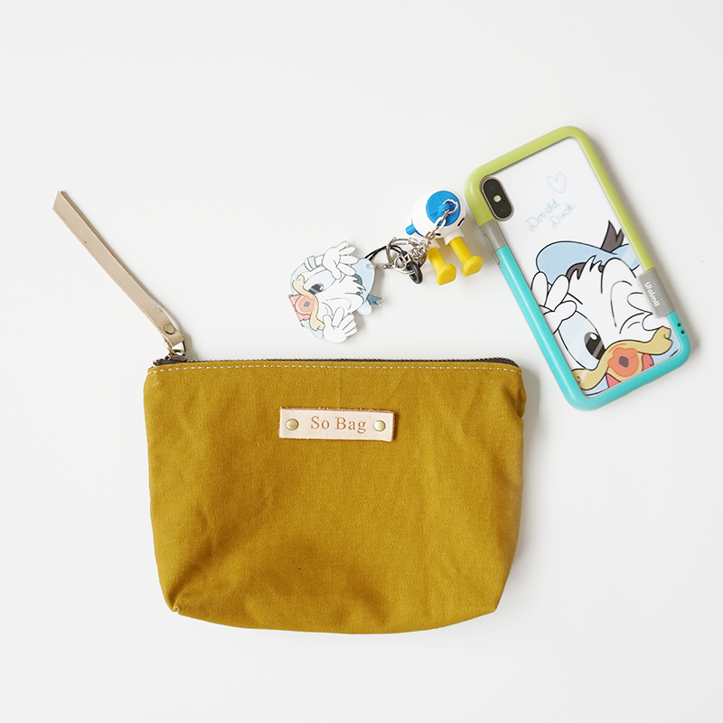 sobag Japanese zipper canvas mobile coin purse female ginger yellow makeup bag pure cotton ins literary clutch purse