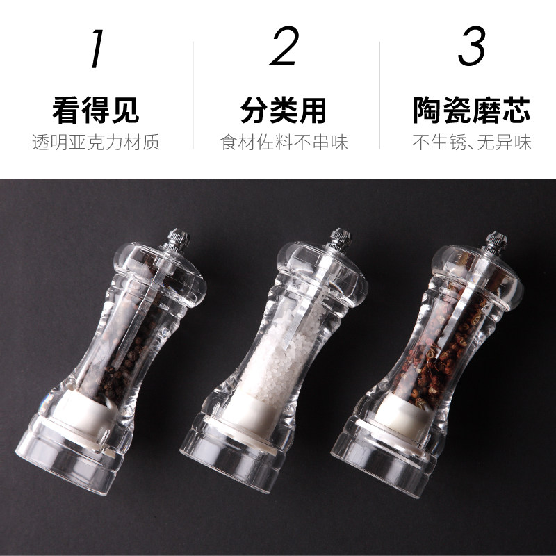 Freshly ground transparent pepper grinder Household manual grinding bottle pepper sea salt black and white pepper millet mill