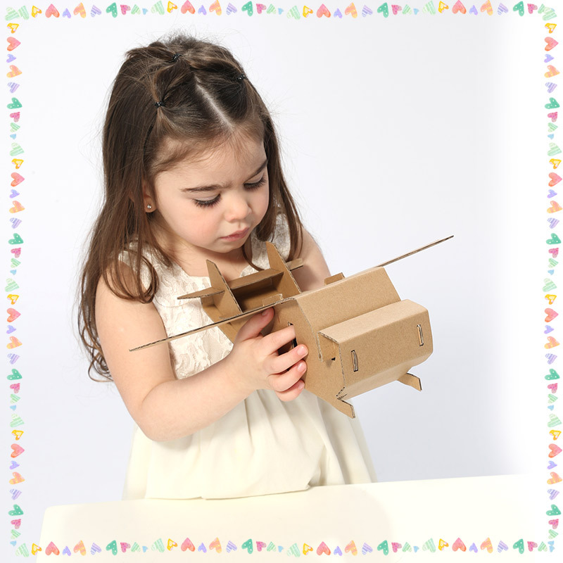 Carton toy area cardboard construction and production of kindergarten insertion model 3 children hand DIY aircraft windmill folder