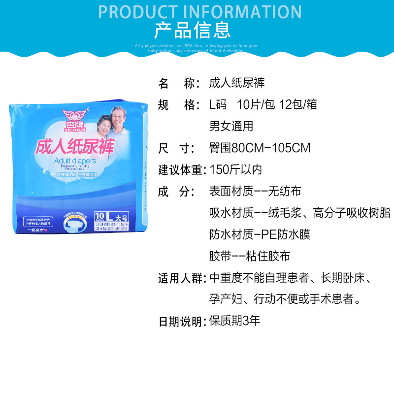 Xing brand adult diapers large size diapers for the elderly Men and women special urine pad non-pull pants for the elderly