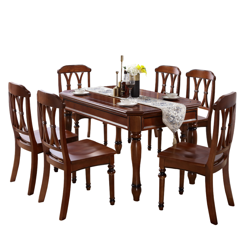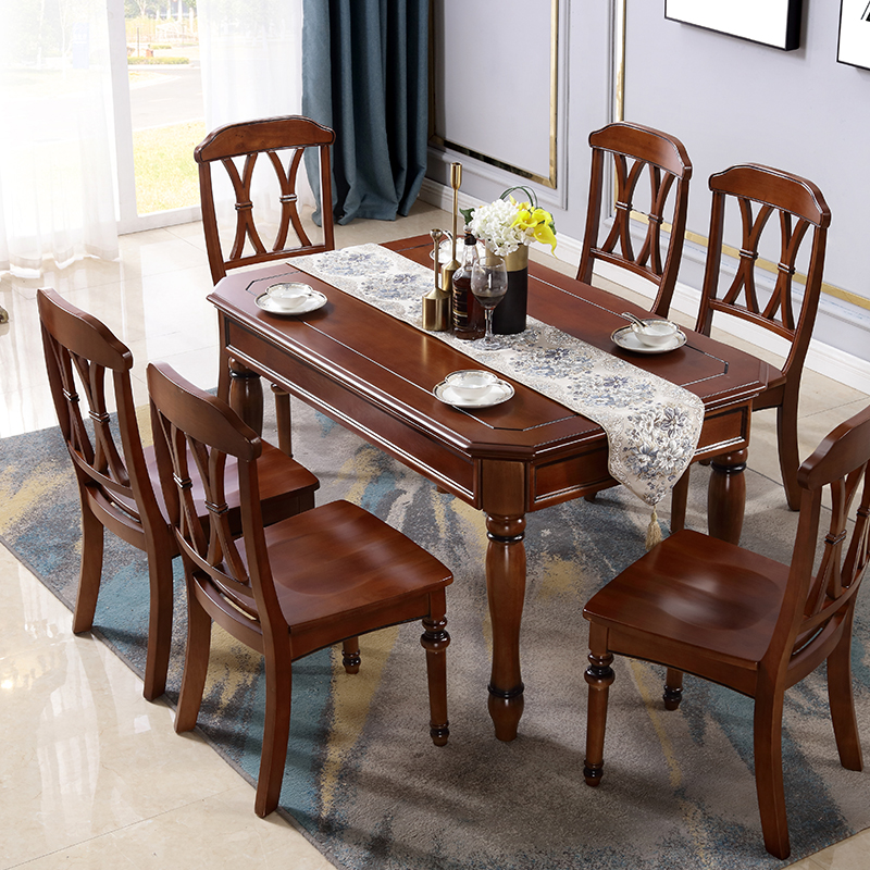 American all solid wood rustic old dining table restaurant dining table rectangular small apartment dark dining table and chair combination