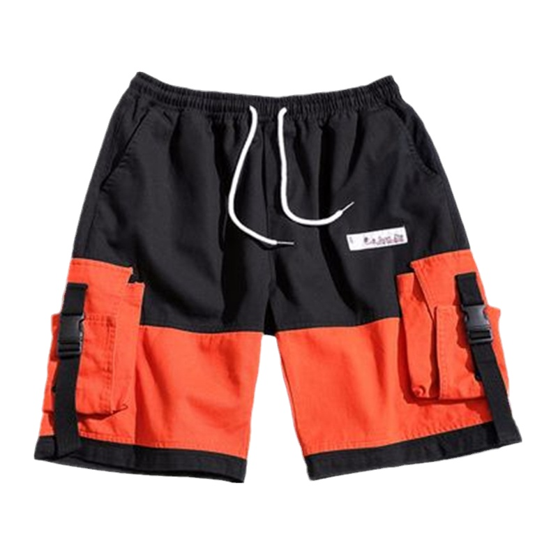 Summer overalls shorts men's Japanese trendy brand plus fat plus size trend color contrast loose hip-hop sports five-point pants