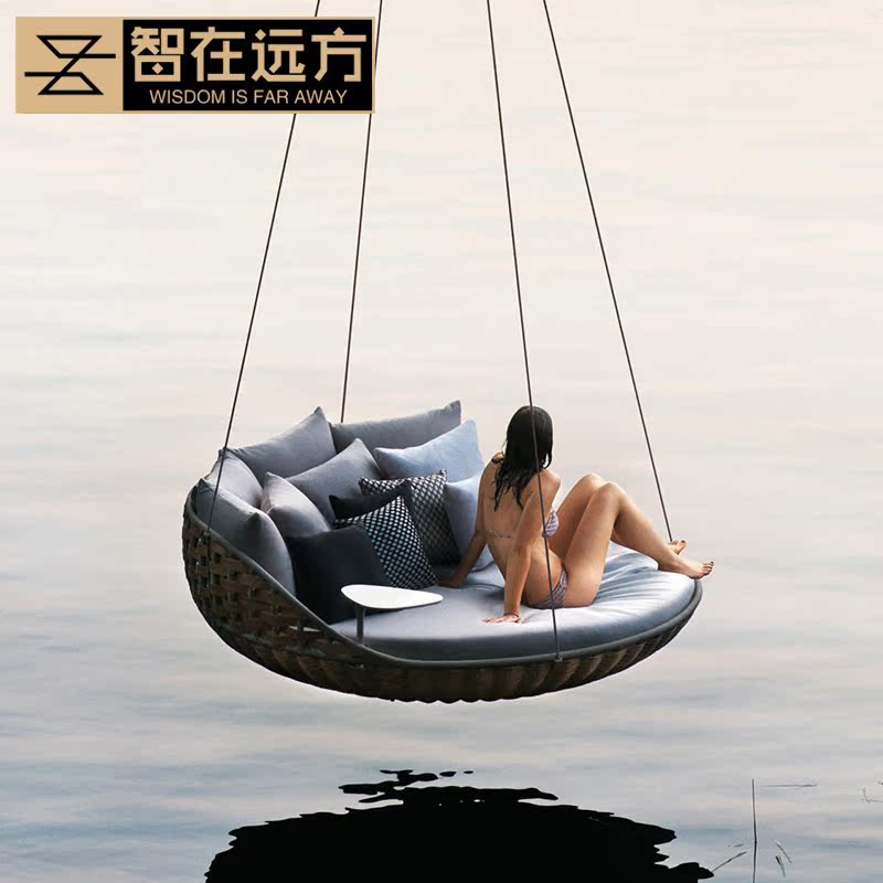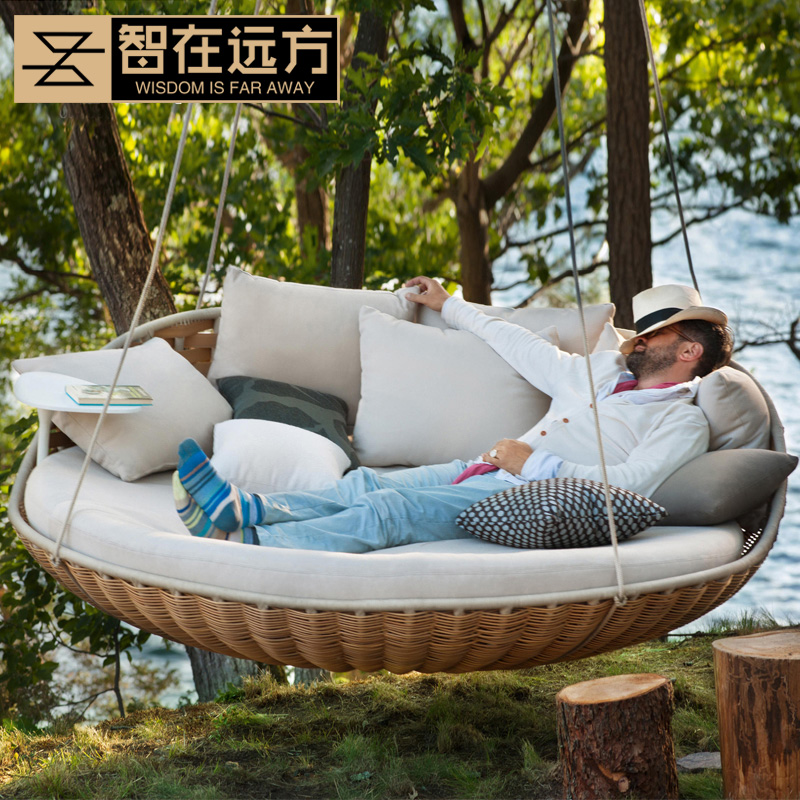 Outdoor large round bed outdoor leisure bed courtyard balcony deck chair imitation rattan beach bed rattan deck bed terrace sun bed