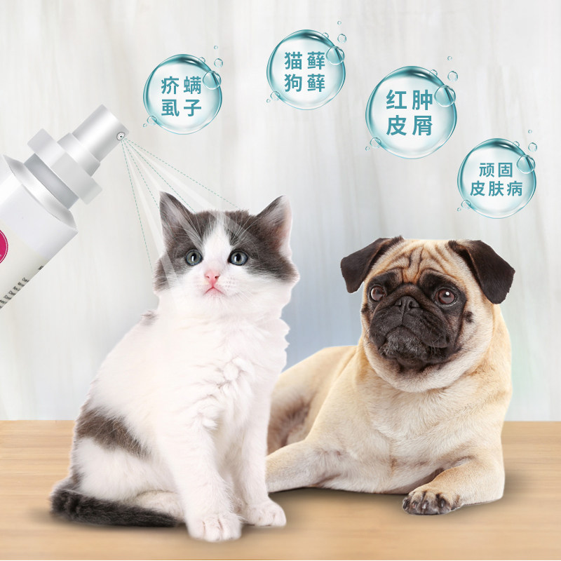 Thai pet skin mite fungal spray pet hair loss red spot skin disease cat and dog moss red swelling fungal infection Demodex mites
