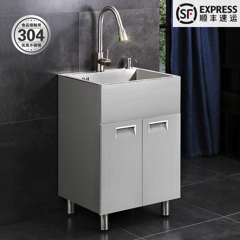 German kitchen 304 stainless steel integrated manual sink single sink integrated vegetable basin balcony laundry pool combination cabinet