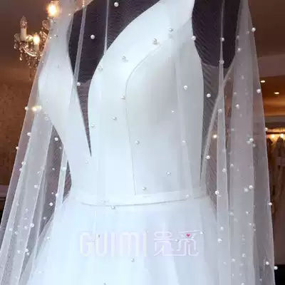 Wedding dress pearl veil New forest series photo props beaded headdress long drag super fairy Korean bride wedding veil