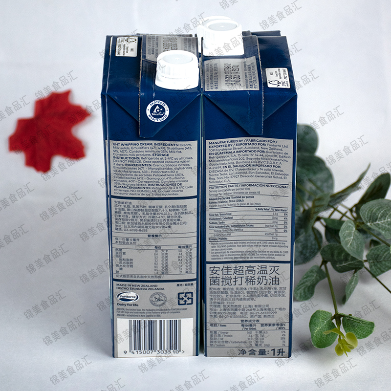 Angjia Light Milk Oil 1L* 12 New Zealand Import Animal Lean Cream Framed Milk Cover Egg Tarts