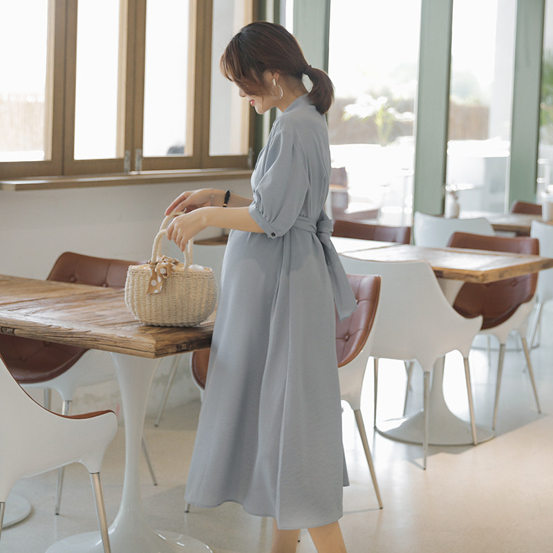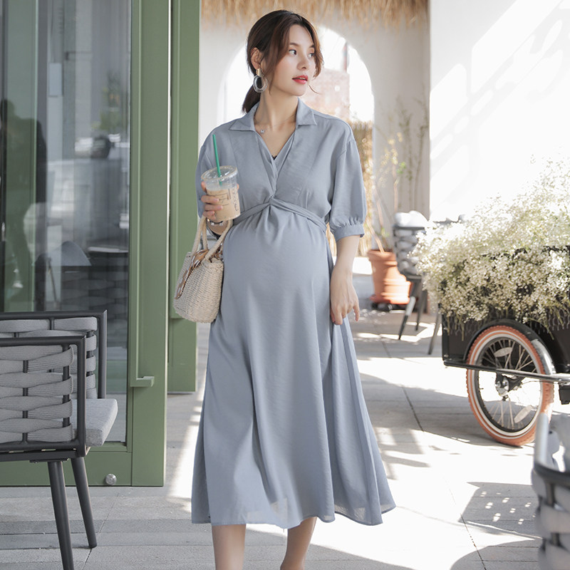 Women pregnant women dress summer 2021 new medium and long version knee-high summer fashion trend mom large size summer work clothes
