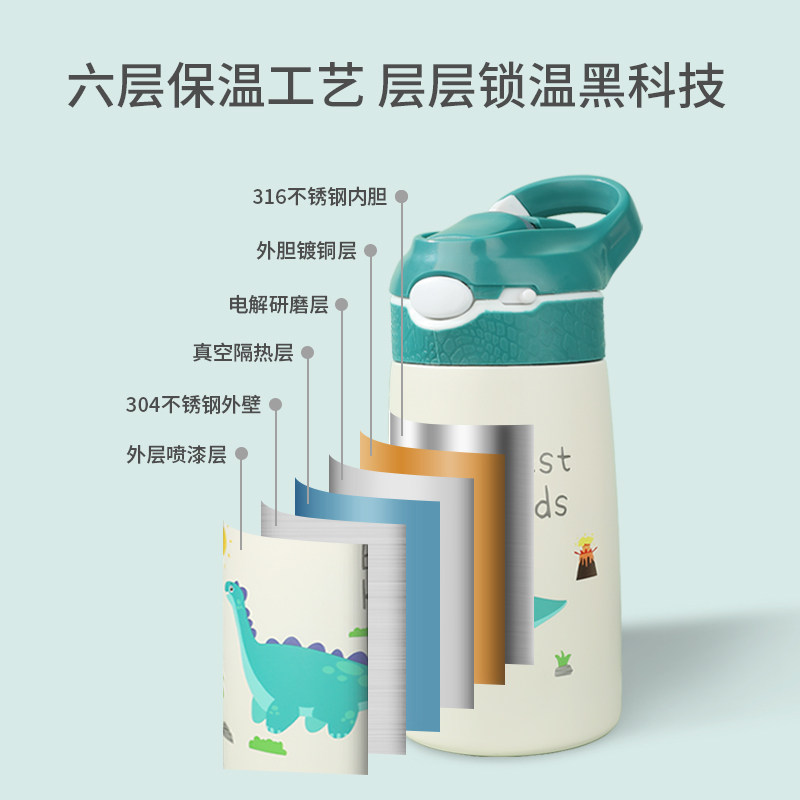Children's cartoon duckbill straw portable 316 stainless steel heat preservation cup kindergarten baby fall kettle