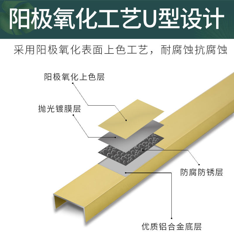 Aluminum alloy U-shaped groove background wall closure strip ceiling pressure strip plate edge sealing card strip U-shaped strip decoration sun corner promotion