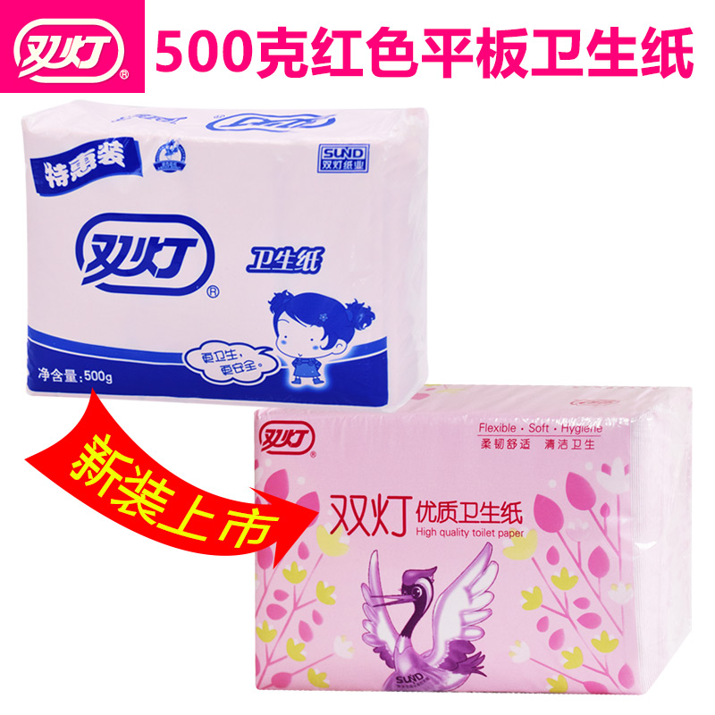 Double light red flat toilet paper 500g16 Pack Home Whole Affordable Thickened Grass Paper Native Pulp Toilet Paper