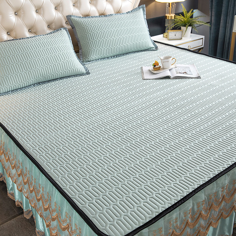 Ice silk mat high-grade European-style lace bed skirt three-piece latex soft mat removable and washable zipper non-slip air-conditioning cool mat
