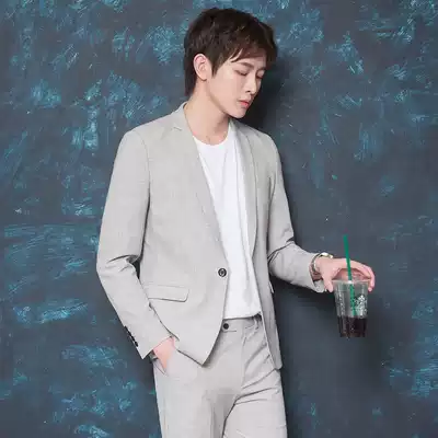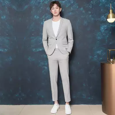 CSO spring and summer men's gray small suit suit trend leisure Korean wind college students handsome slim suit suit groom