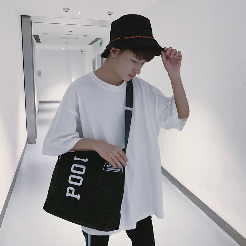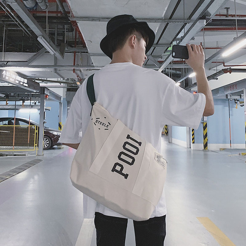 Inclined Satchel Bag Men's Single Shoulder Bag Large Capacity Student Canvas Bag Boys Portable Casual Scapegoat Trend Days Postman Bag