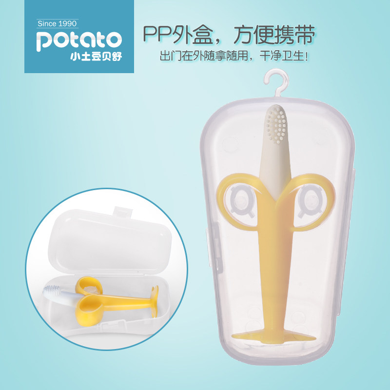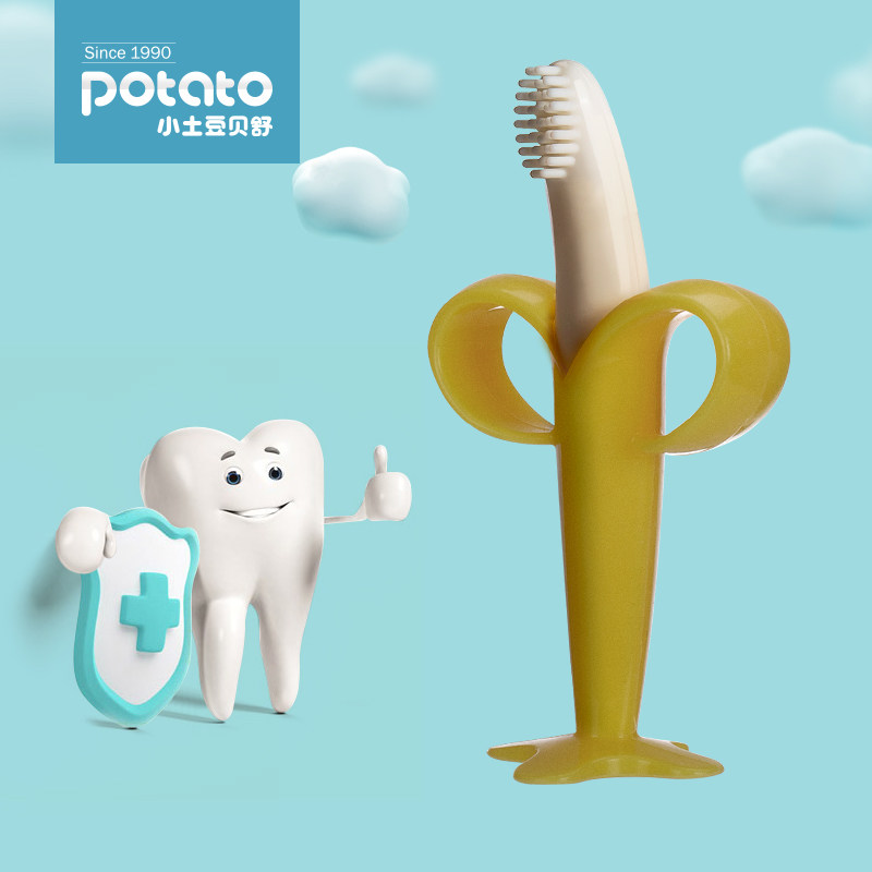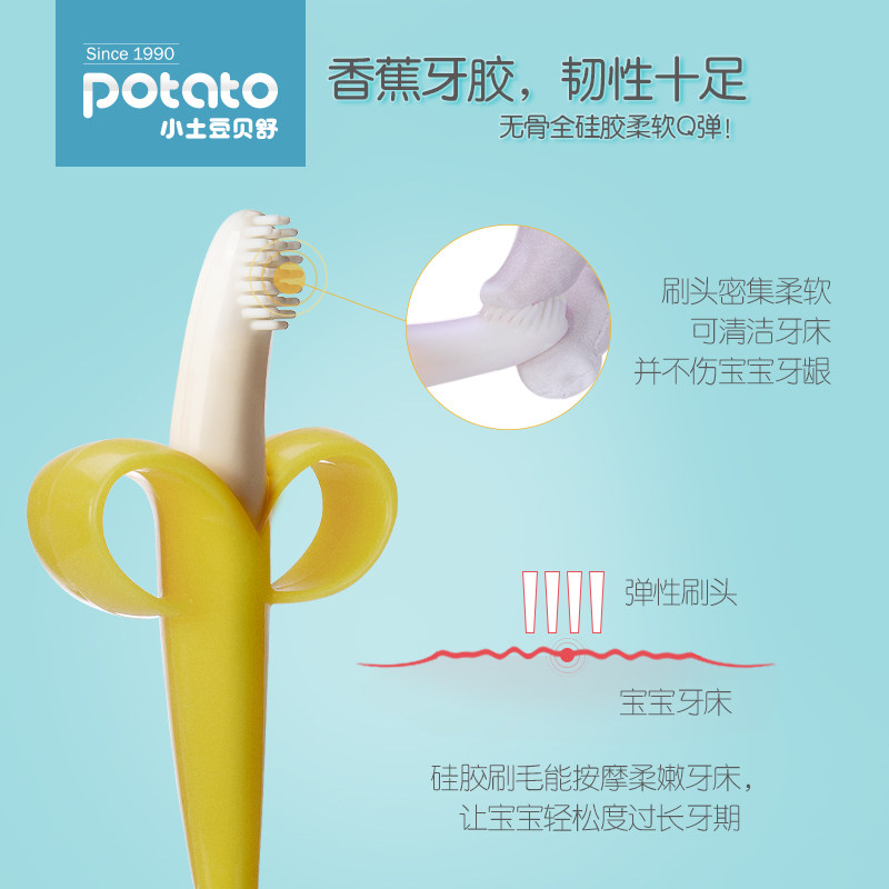 Small potatoes grinding tooth stick baby banana solid tooth holder non-toxic natural silicone gel soft baby bites the music toy for 0-12 months