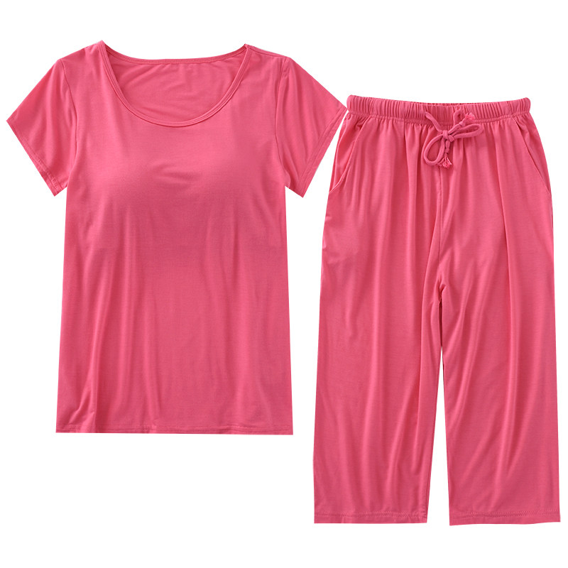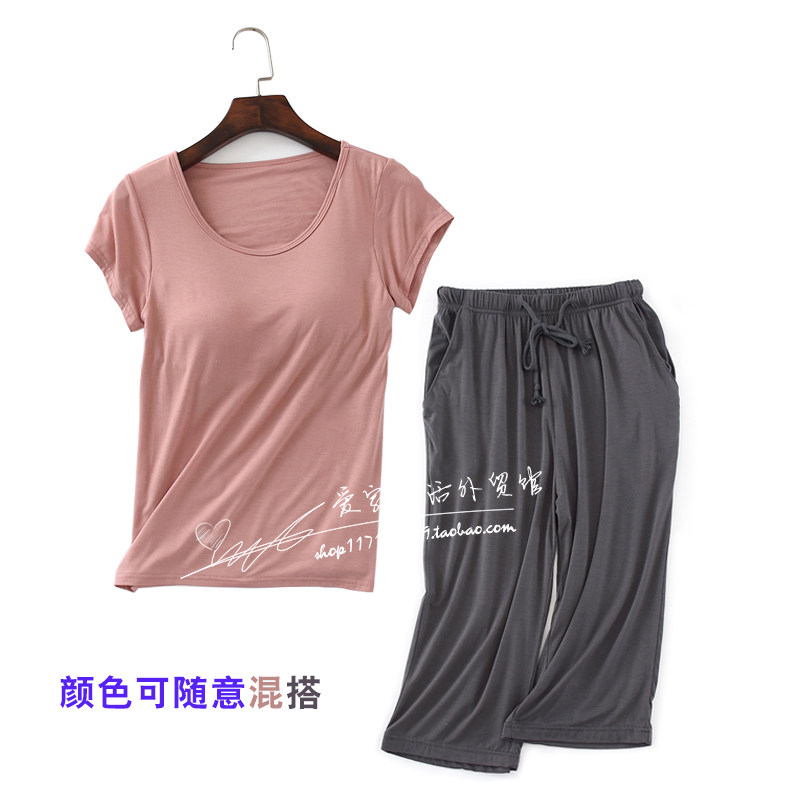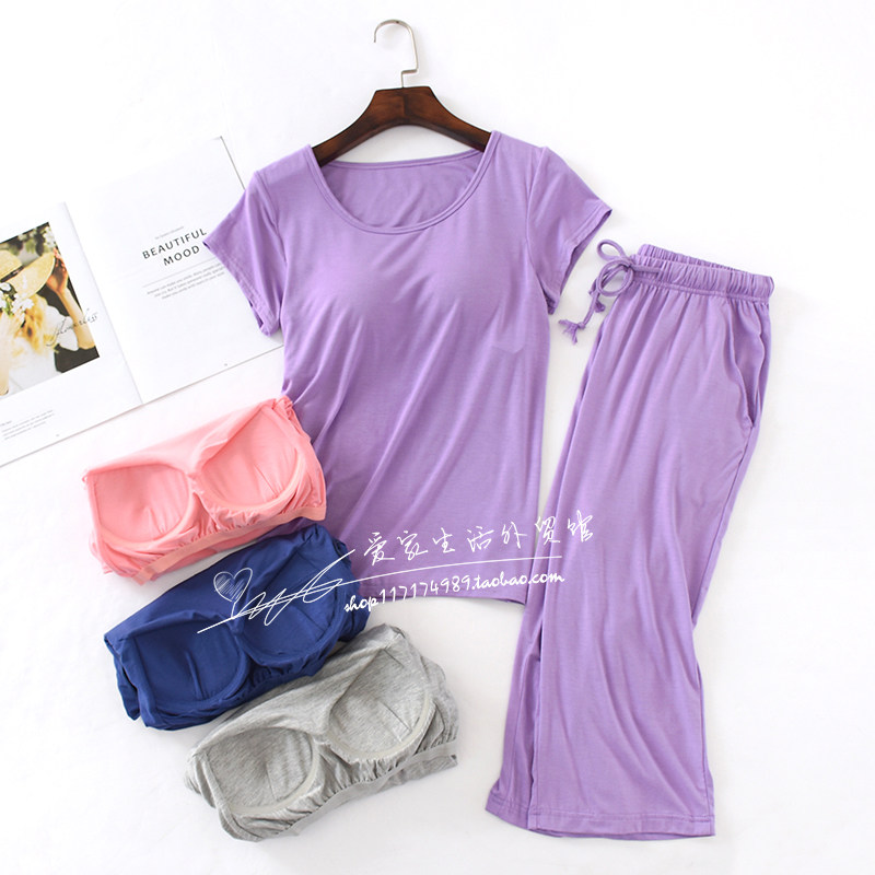 New thin Modale cotton female summer sleeve seven - pencil pajamas two - piece suit large size with chest mat home suit