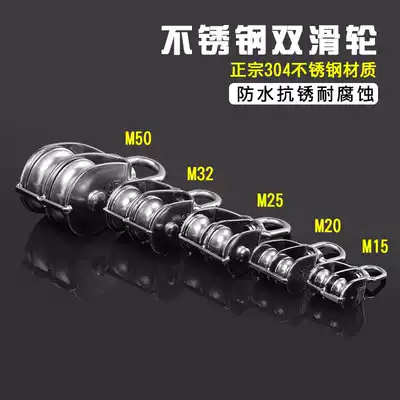 304 stainless steel pulley fixed pulley single double wire wheel wire rope chain lifting pulley M15 20 25 32